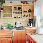 Une cuisine complète, ainsi qu'un coin repas extérieur, sont disponibles pour les repas. Vous trouverez également une cafétière/théière électrique, un réfrigérateur et de la vaisselle pour préparer votre propre repas.